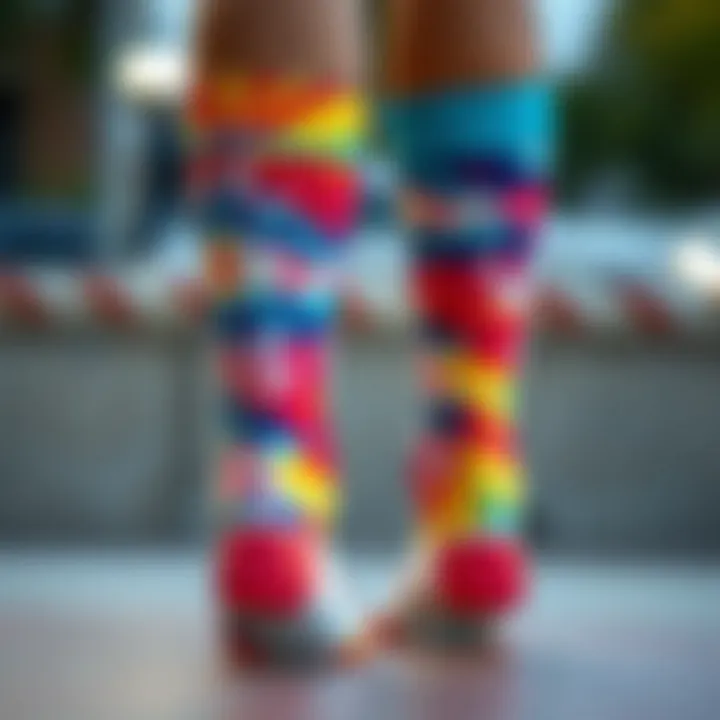 Moreover, layerings of colors can create optical effects, giving the illusion of depth. This optical complexity allows skateboarders to express intricate ideas through simple footwear accessories, making these socks a staple in their wardrobes.